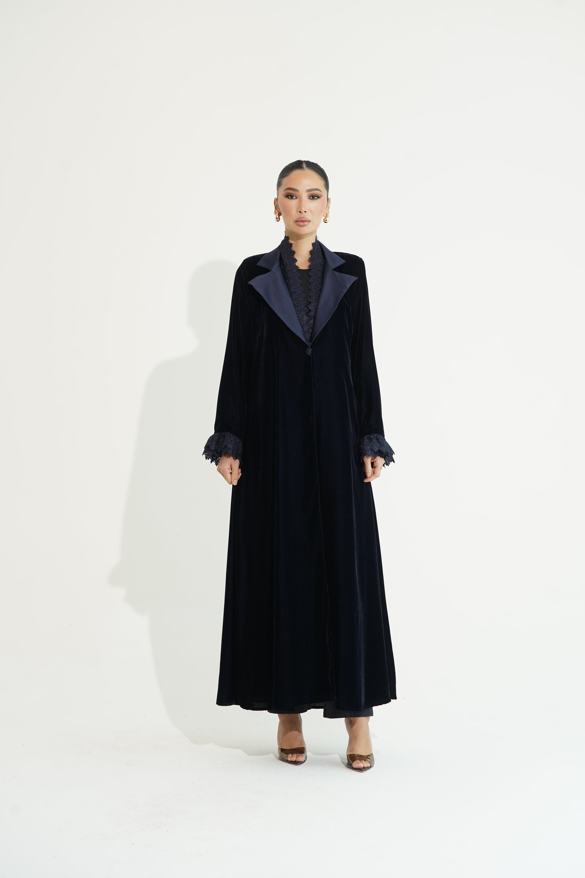 Every Hissa Line piece begins with a vision — blending the richness of Middle Eastern heritage with contemporary design. Our kaftans and abayas are crafted from premium fabrics sourced from the finest mills, with meticulous attention to embroidery, draping, and finish.